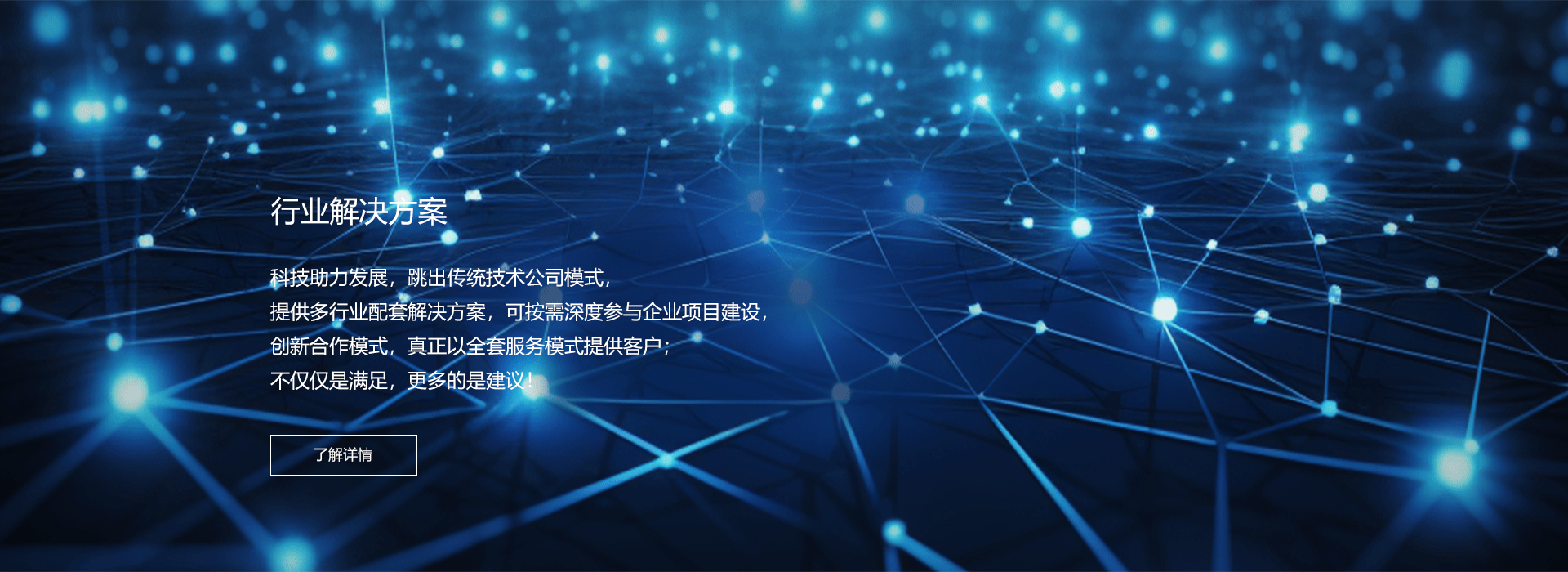科技助力發(fā)展,跳出傳統(tǒng)技術(shù)公司模式,提供多行業(yè)配套解決方案,可按需深度參與企業(yè)項(xiàng)目建設(shè),創(chuàng)新合作模式,真正以全套服務(wù)模式提供客戶;不僅僅是滿足,更多的是建議!